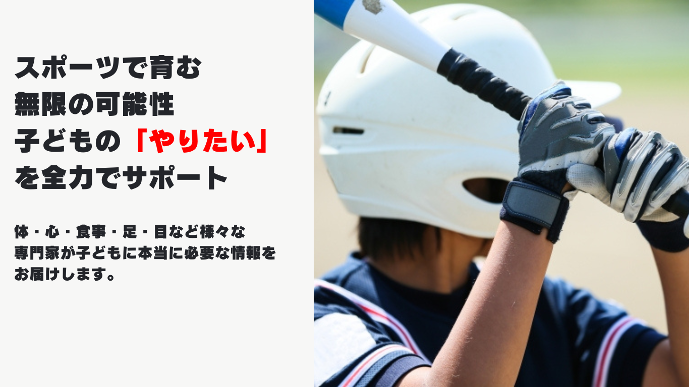 お子さんがスポーツをする上でおこる怪我や体の悩み。子どもの成長にともなう、メンタルや食事についてなど様々なお悩みをご家庭で解決できる様に我々がサポートします。